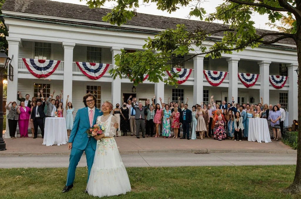 Some might see a brightly pastel hued, cottagecore inspired fever dream. I see a passion project of a wedding that will be as unforgettable as it was fun and inspiring to plan. Pim introduced me to so many fun ideas from wedding trends in her homeland Thailand, including the social flagging wristbands pictured below, and artisans making unbelievable towering decorative flowers. No one could have predicted Pim and Cullen wouldn't make it to their own wedding, at least in person. The night before their wedding found me buying a 4k TV monitor to videocall the happy couple into their own ceremony...Venue - Martha Mary Chapel and Eagle Tavern Greenfield Village at The Henry Ford