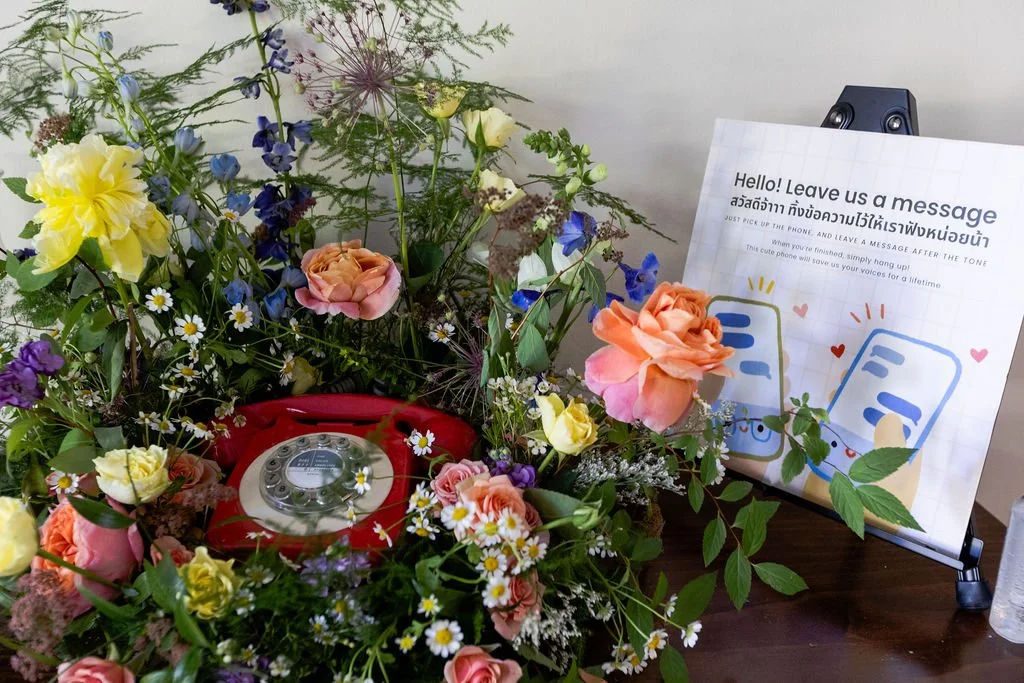 Some might see a brightly pastel hued, cottagecore inspired fever dream. I see a passion project of a wedding that will be as unforgettable as it was fun and inspiring to plan. Pim introduced me to so many fun ideas from wedding trends in her homeland Thailand, including the social flagging wristbands pictured below, and artisans making unbelievable towering decorative flowers. No one could have predicted Pim and Cullen wouldn't make it to their own wedding, at least in person. The night before their wedding found me buying a 4k TV monitor to videocall the happy couple into their own ceremony...